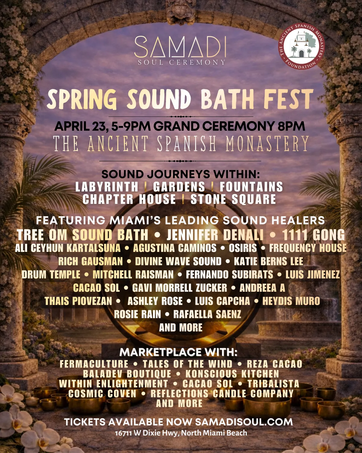 Discover the pure peace and resoration of the Monastery's sacred spaces while enjoying sound bath activations from Miami's top sound healers.